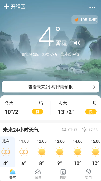 - 天气信息全面丰富:涵盖实时天气状况、未来24小时逐时预报与15日趋势预报,以及空气质量指数等实用数据。