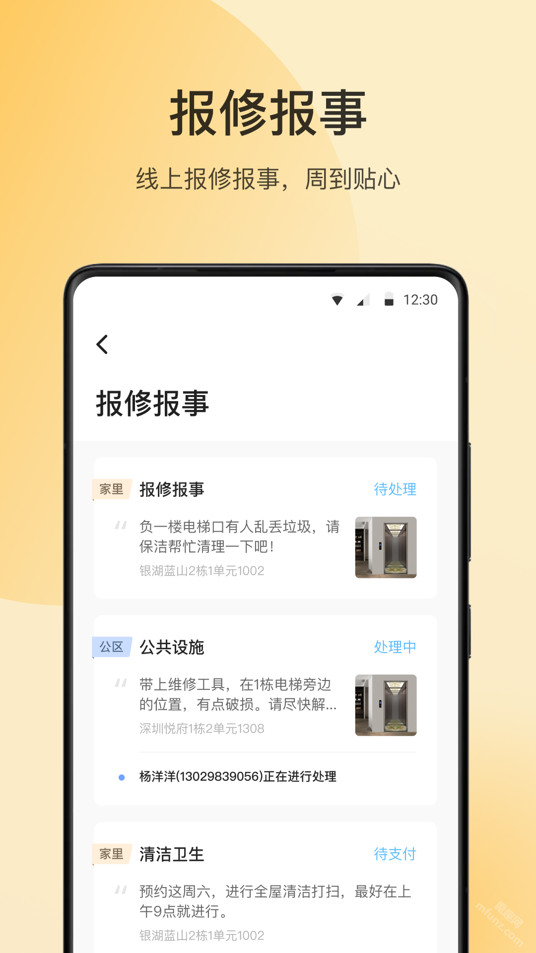 借助朝昔,业主能够不受时间地点限制,通过手机提交家中设施的报修申请或反馈社区内存在的问题,物业方面会迅速做出回应并进行处理,保障业主的日常生活不会因此受到干扰。