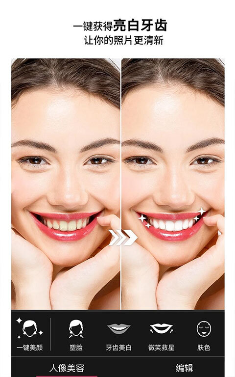 1、强大的美颜功能:具备瘦脸、大眼、美白、磨皮等丰富的美颜效果,助你瞬间提升颜值,轻松拍出肌肤无瑕的美照。