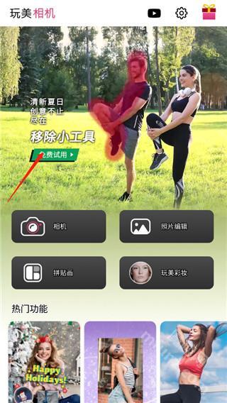 打开在本站的玩美相机,点击首页上的消除小工具