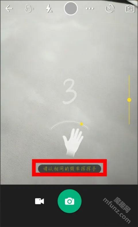 按照屏幕上的文字提示,以相同的频率挥动你的手。