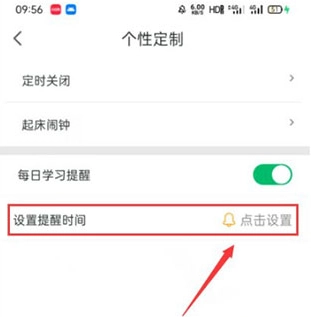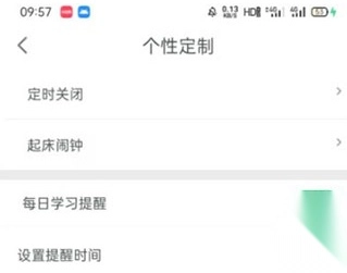 进入【个性定制】页面后,把【每日学习提醒】按钮切换到开启状态。