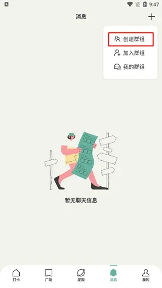 点击页面上方的加号图标,待弹出下拉列表后,从中选择“创建群组”这一选项。