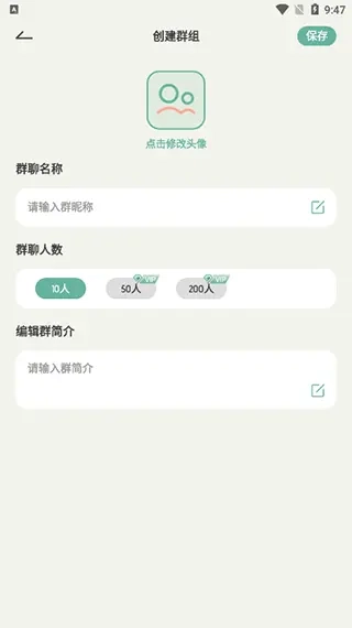 在创建群组界面,设置好相关信息,点击保存即可