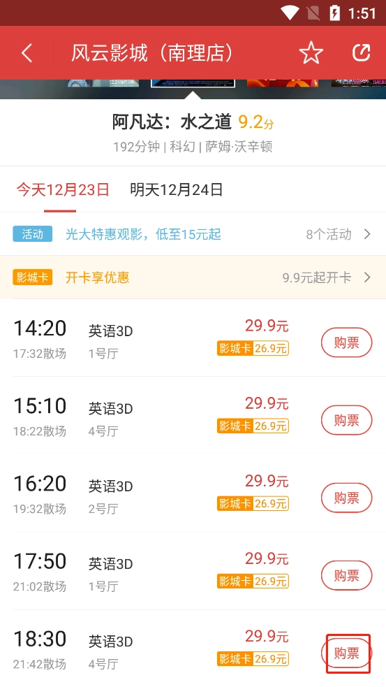 选择你想要的影院地址进入;