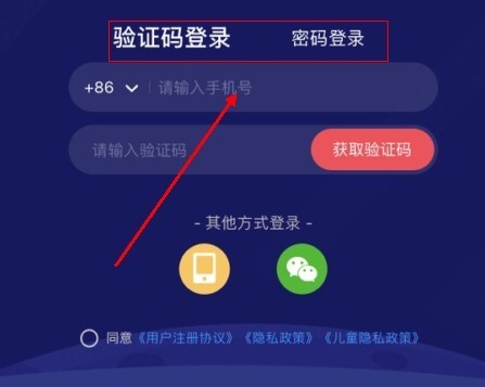 在登录界面,你可以选择通过验证码完成注册验证,也可以使用密码进行登录操作。