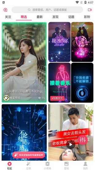 【个性DIY】支持将自拍或的视频一键设置为专属手机动态壁纸,并且可以有声播放哦;