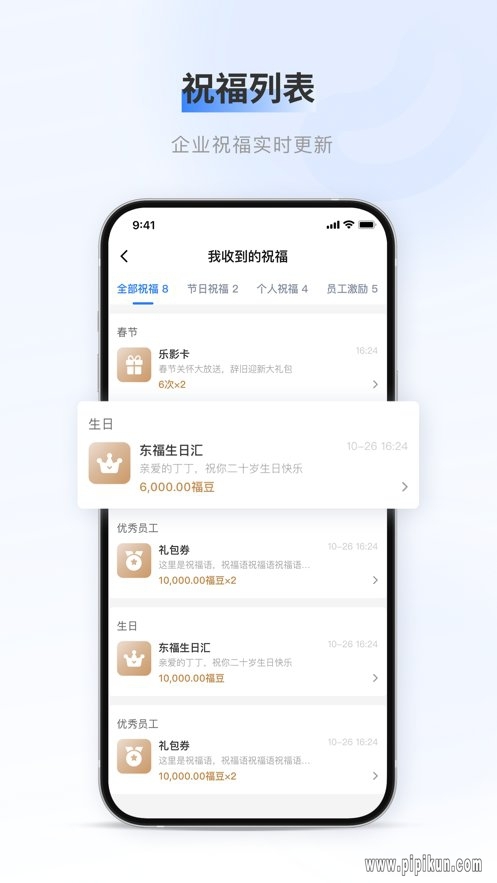 含有企业祝福服务,个人所有获得祝福都能详细记录;