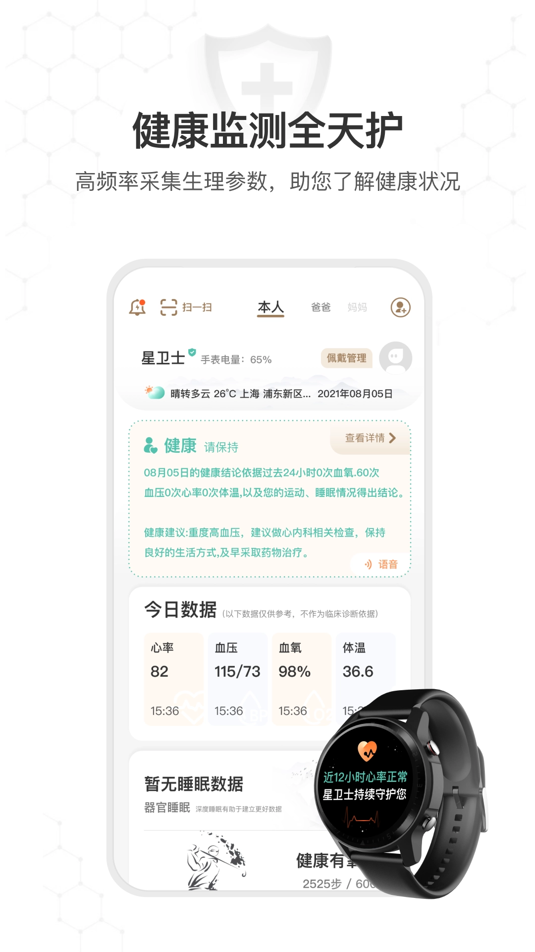 星卫士可实时监测用户的心率、血压等关键生理指标,助力用户及时察觉身体异常。