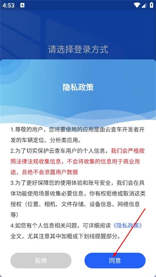 在隐私政策弹窗里,点击同意相关政策内容后,即可进入登录方式的选择页面。