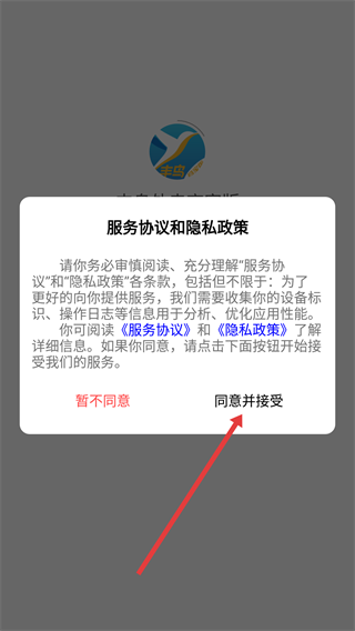 请先认真阅读《服务协议》和《隐私政策》中的相关条款,在确认没有异议后,点击弹窗里的“同意并接受”按钮,这样就能进入软件的下一个操作步骤了。
