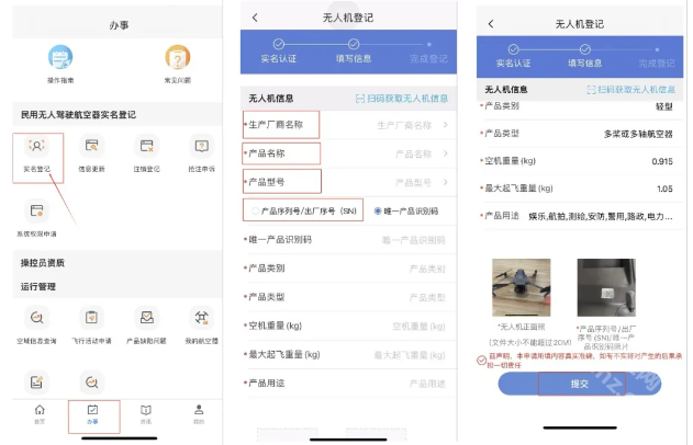 该软件具备无人机实名登记、改装登记、注销登记、无人机驾照申请以及电子证件申请等功能。