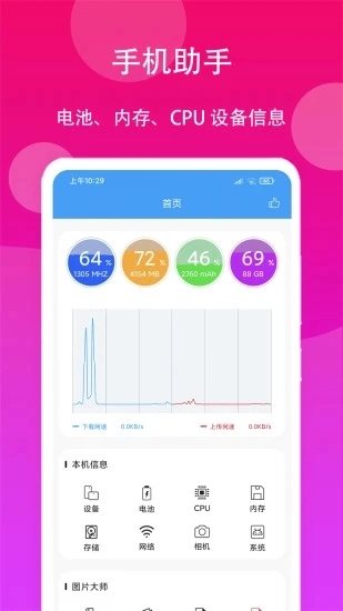 硬件信息功能:可实时查看手机的各项硬件参数,如CPU、内存、存储等信息,帮助用户轻松掌握手机的配置情况。