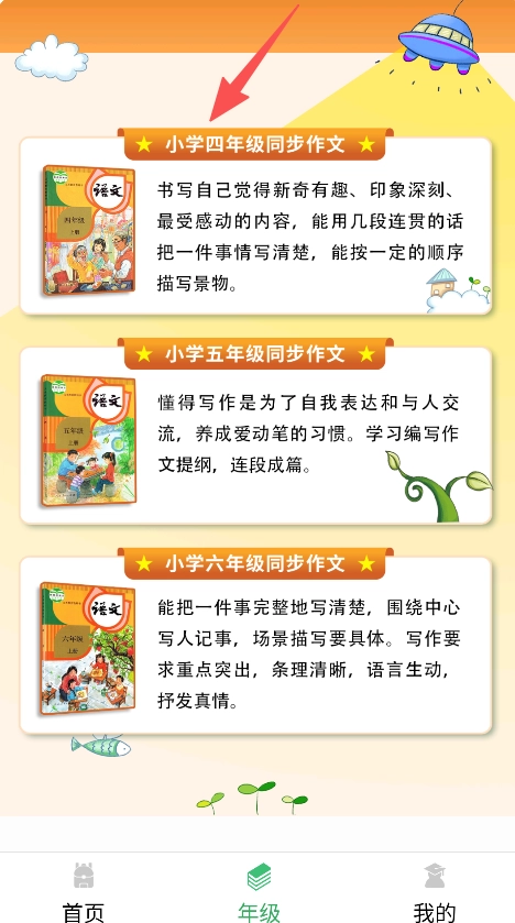 1、启动软件后,挑选对应的年级(例如小学四年级),接着进入同步作文的界面。