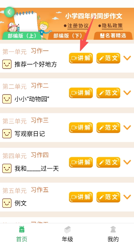 3、打造完整的作文学习链路,从单元习作起步,延伸至范文讲解,全面覆盖作文学习的各个环节,助力学生实现作文能力的一站式提升。