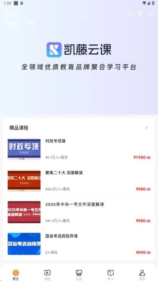 凯藤云课是一款汇集海量网课资源、支持灵活选课的在线教育应用。用户可根据自身学习计划,挑选适配的课程报名;课程的学习时间会提前公布,大家能自主规划上课时段,无需前往线下场地学习,同时还能实时查看个人的课程进度,了解是否已完成全部学习内容。