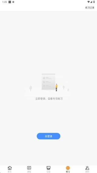 4、在练习页面,可以展示大家学习进度,一键答题。