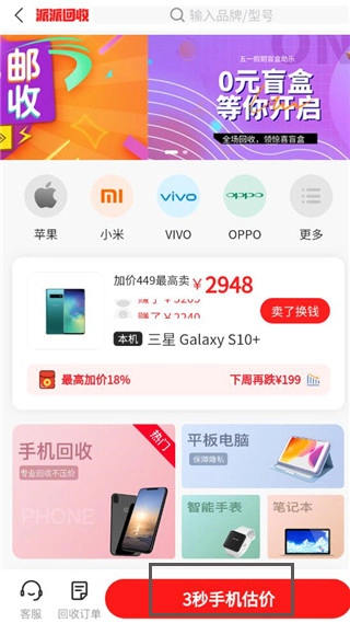 2、点击三秒手机估价。