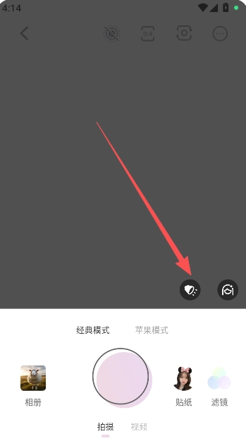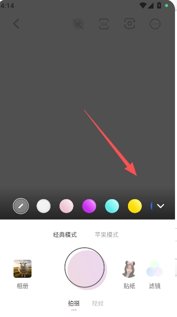 2、在相机拍摄区域的美颜功能左边就是调色盘。