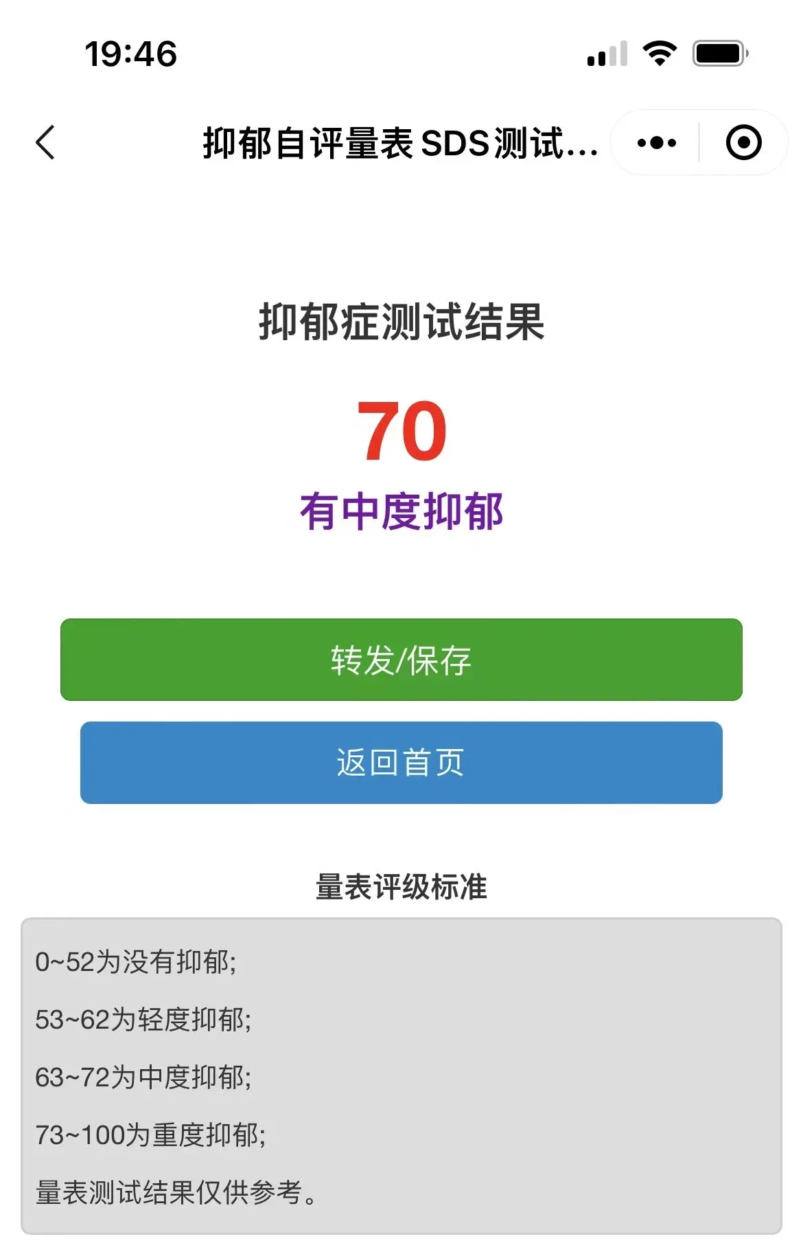4、完成抑郁焦虑测评后可查看报告并预约专家解析。