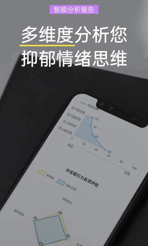 2、精准评估:借助专业的心理测试题目与算法模型,对用户的心理状态进行准确衡量。