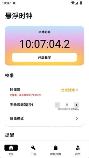 3、在首页可以看到悬浮钟功能,点击开始悬浮