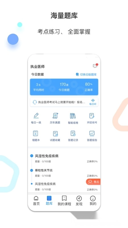 百通医学最新版是面向广大医考备考用户打造的学习平台,依托百通世纪的执业药师公开课网络课堂,覆盖执业医师、助理医师、执业药师、医师资格、护士考试等各类医学考试课程,并提供每日一练、历年真题、智能组卷、押题快考等多样化刷题功能,助力用户攻克考点难点,实现高效提分!