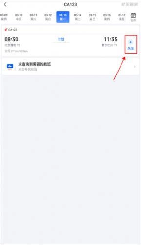 2、在此页面搜索航班号或在飞行助手模块点击航班,都可以关注。