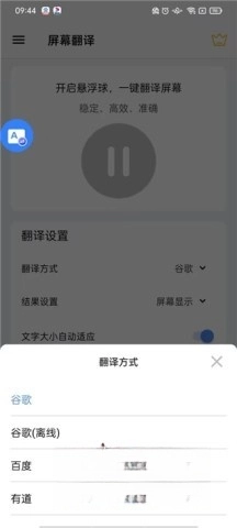 5、可选择谷歌在线翻译、谷歌离线翻译、百度翻译、有道翻译这四种翻译方式;