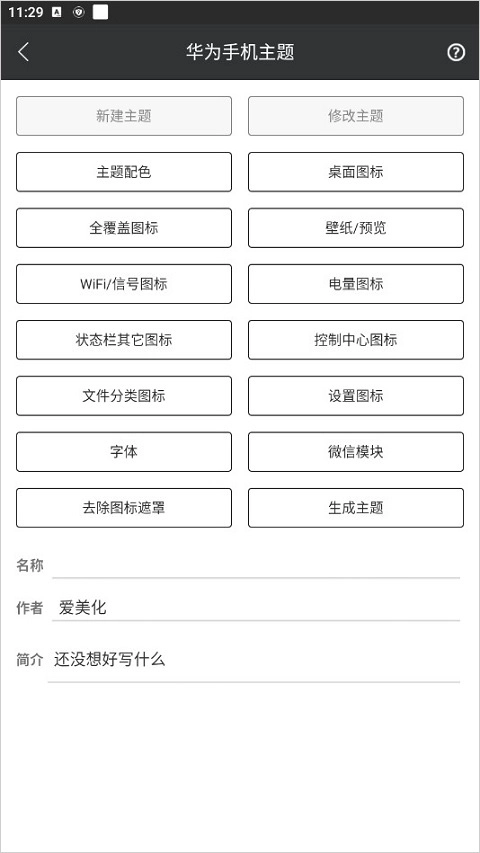 3、填写主题名称与作者名,接着可自行编辑并设置心仪的主题图标。