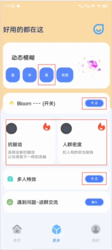 4、随后进入更多页面,把页面里的特效以及动态模糊功能全部开启。