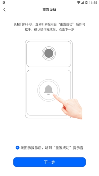 4、最后按照提示对设备进行重置操作,完成后点击“下一步”,找到对应的设备就能成功添加了。