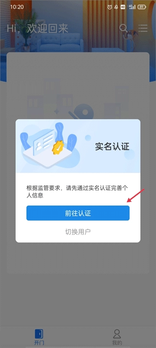 1、完成软件账号的注册与登录操作后,页面会自动弹出实名认证的提示,此时点击“前往认证”按钮即可。