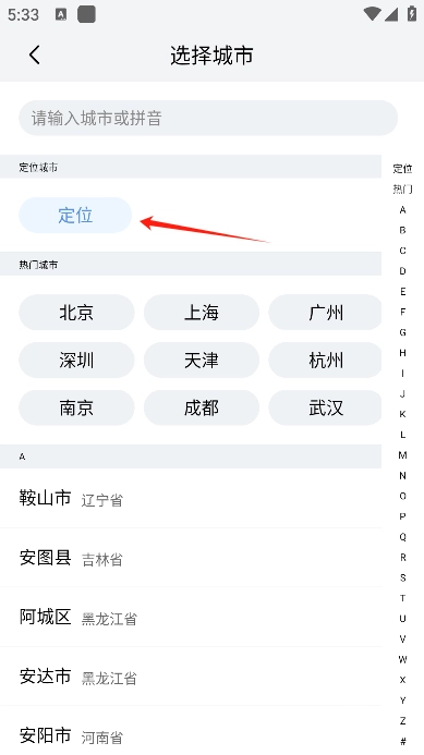 2、接下来需要用户开启定位功能以获取当前所在位置,若用户不想开启定位,也能够手动选择位置。