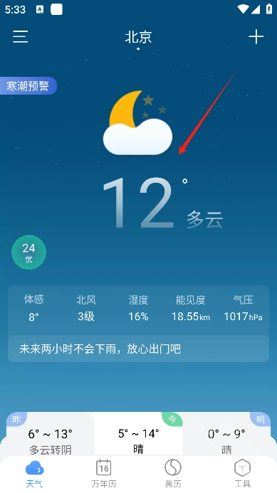 1、精准预报:小云天气会实时更新天气数据,能给出分钟级的降雨提醒,还提供24小时和15天的天气预报,让用户得到的信息准确又可靠。