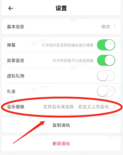 3、接着进入设置页面点击"音乐替换"。