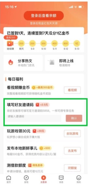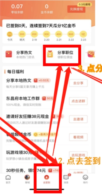 通过58本地完成注册登录后,你能在“赚钱”板块里找到“分享职位”这一功能。