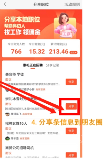 只需把招聘文章分享到微信群或者朋友圈,系统会依据阅读人数,为你发放对应的奖励。
