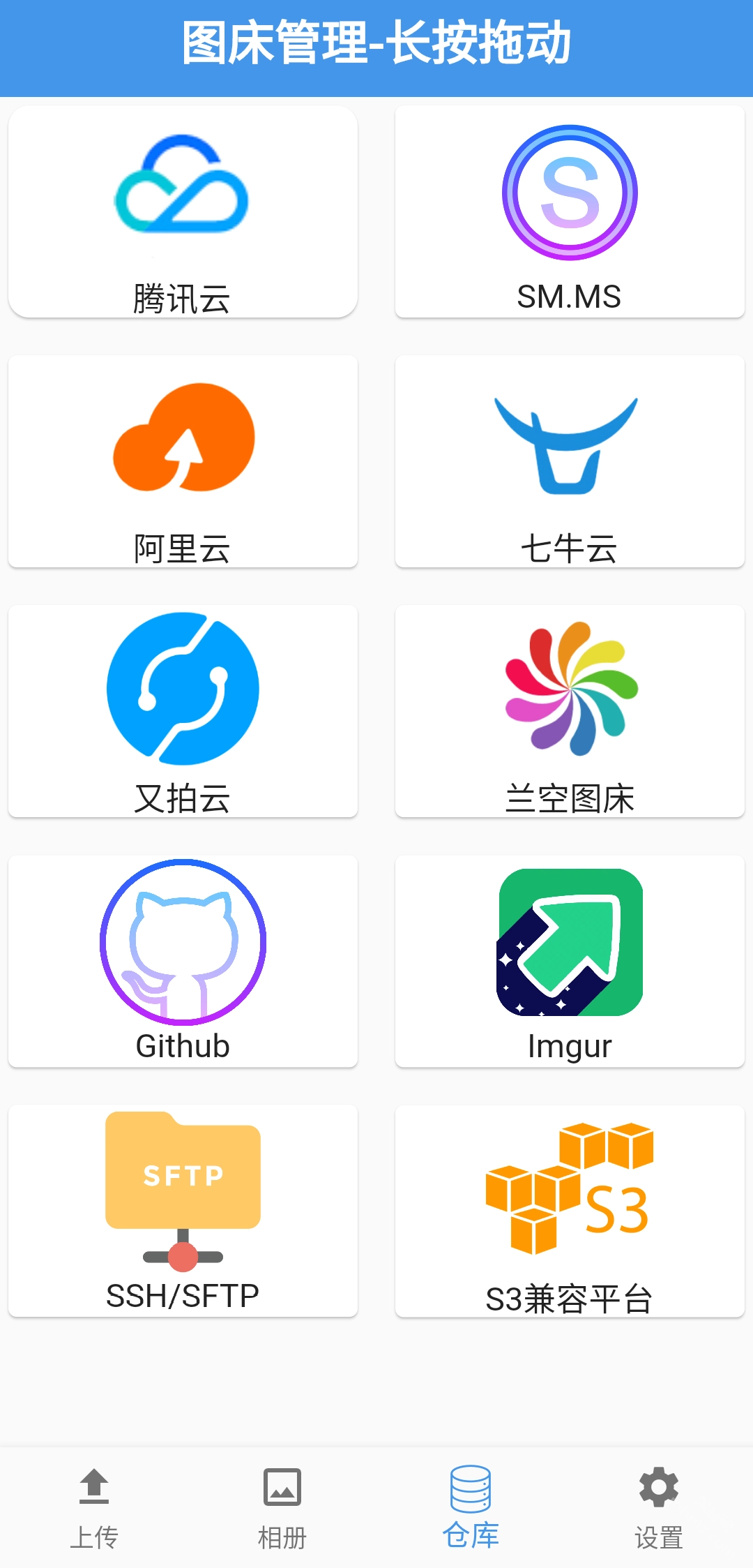 支持WebDAV、S3等多种云存储与图床平台。