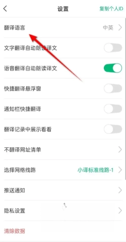 3、在设置中找到“翻译语言”选项。