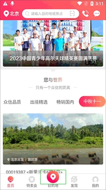 首先我们进入主页,在底部的列表里找到位于中间且最醒目的目的地选项,接着点击它。