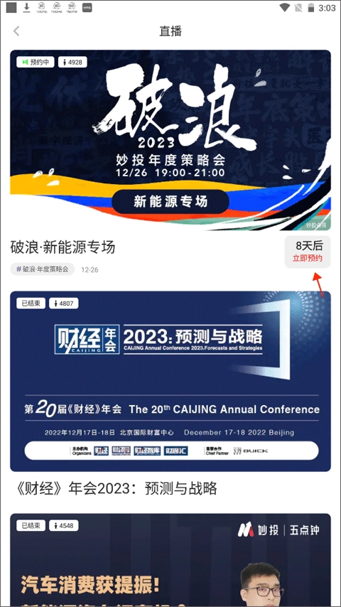 4. 从中挑选想要预约的直播,并点击“立即预约”。