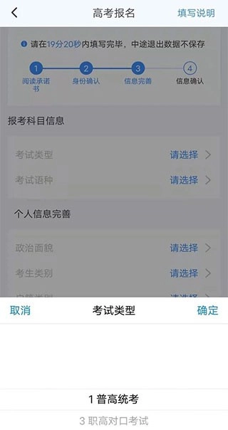 “请在19分52秒内填写完毕”的提醒绝非虚言。这是对线上系统操作场景的真实模拟,有助于锻炼考生在紧张时限下准确、快速完成关键信息填报的能力,也是对其耐心与细致程度的提前检验。