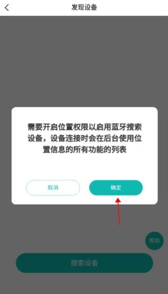 3、系统会弹出提示,要求开启位置权限与蓝牙以完成匹配连接;点击“确定”后,只需等待设备搜索结果出现并进行连接即可。
