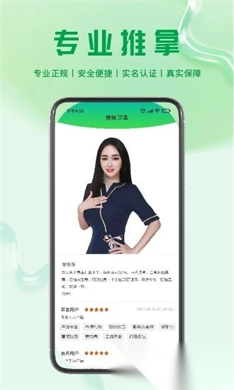 1、每天为您推送专业的按摩体验,让您享受高品质的推拿服务,有效缓解身心的疲惫感;