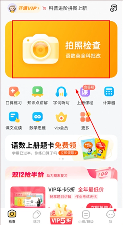 用户在手机上装好小猿口算后,只需对着习题册点击「拍照检查」按钮,软件便会自动识别练习册里的算术题,还能立刻给出答案,对错一眼就能看清楚。