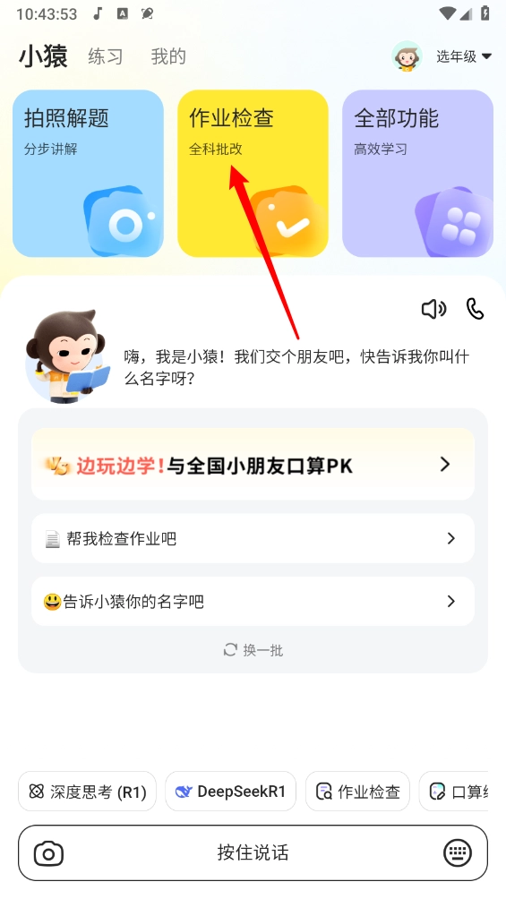 AI智能出题练习:依据孩子的学习进度,自动生成专属口算题,竖式计算、分数运算等难题都能进行针对性训练。