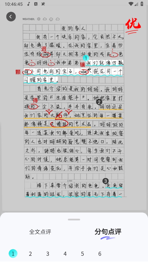 3、还能切换至“作文批改”功能,实现作文一键润色,更有专业的分句点评服务。