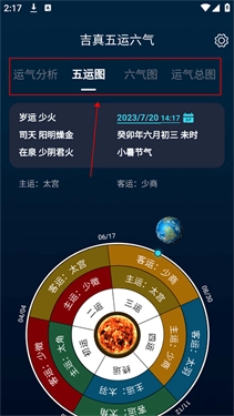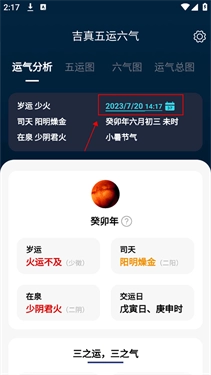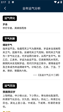 1、在这里你能够查看当天的运势分析、五运图、六气图、运气总图等相关内容