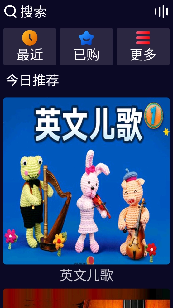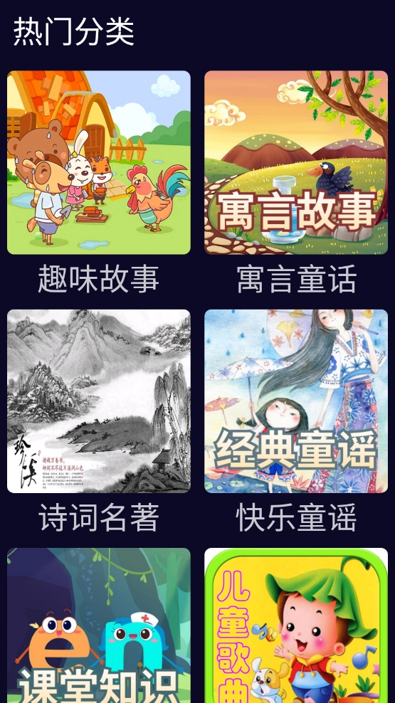 进入页面后,能看到各类内容推荐,涵盖适合儿童的歌曲、图画读物和传统歌谣等,通过上下滑动屏幕就能依次查看这些推荐内容。